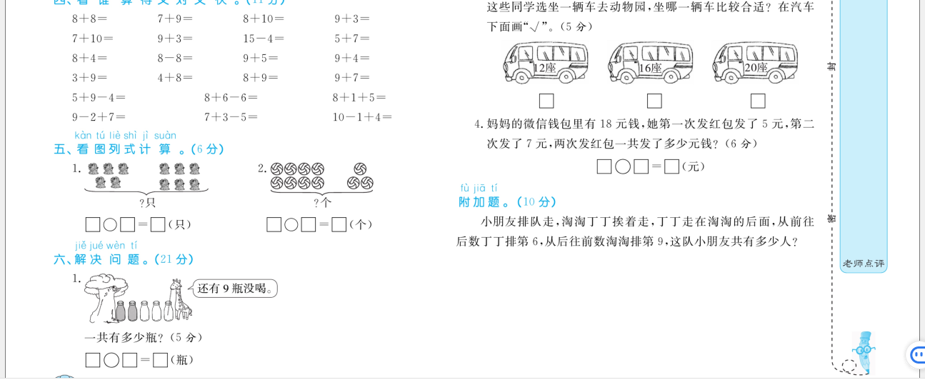 【资源名称】:人教版黄冈名卷一年级上册数学
