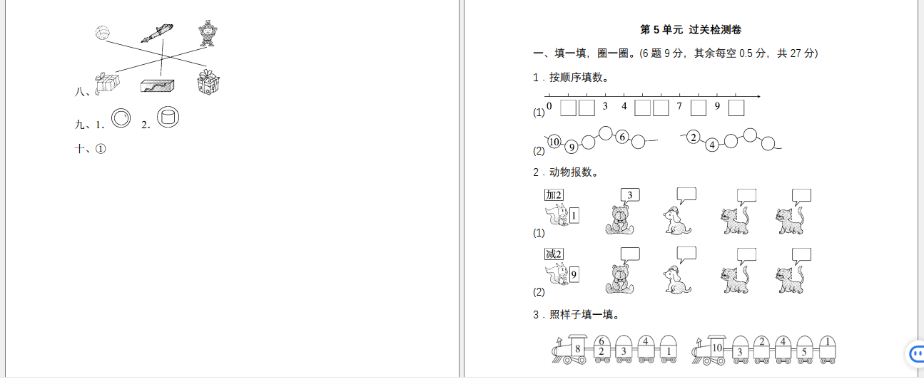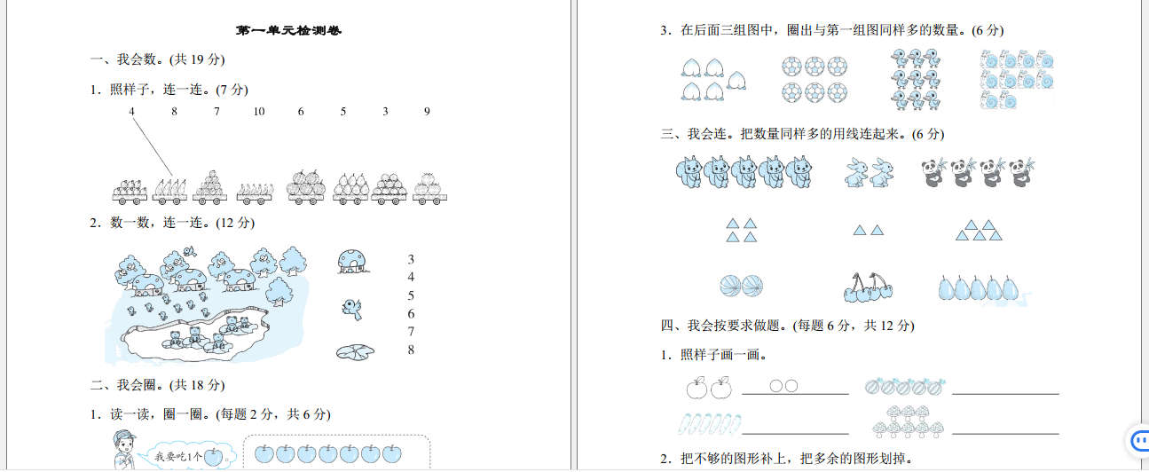 【资源名称】:人教版一年级数学上册单元测试卷